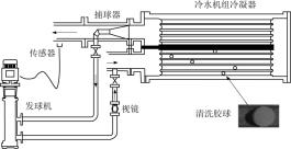 圖1冷凝器膠球自動在線清洗裝置工作原理